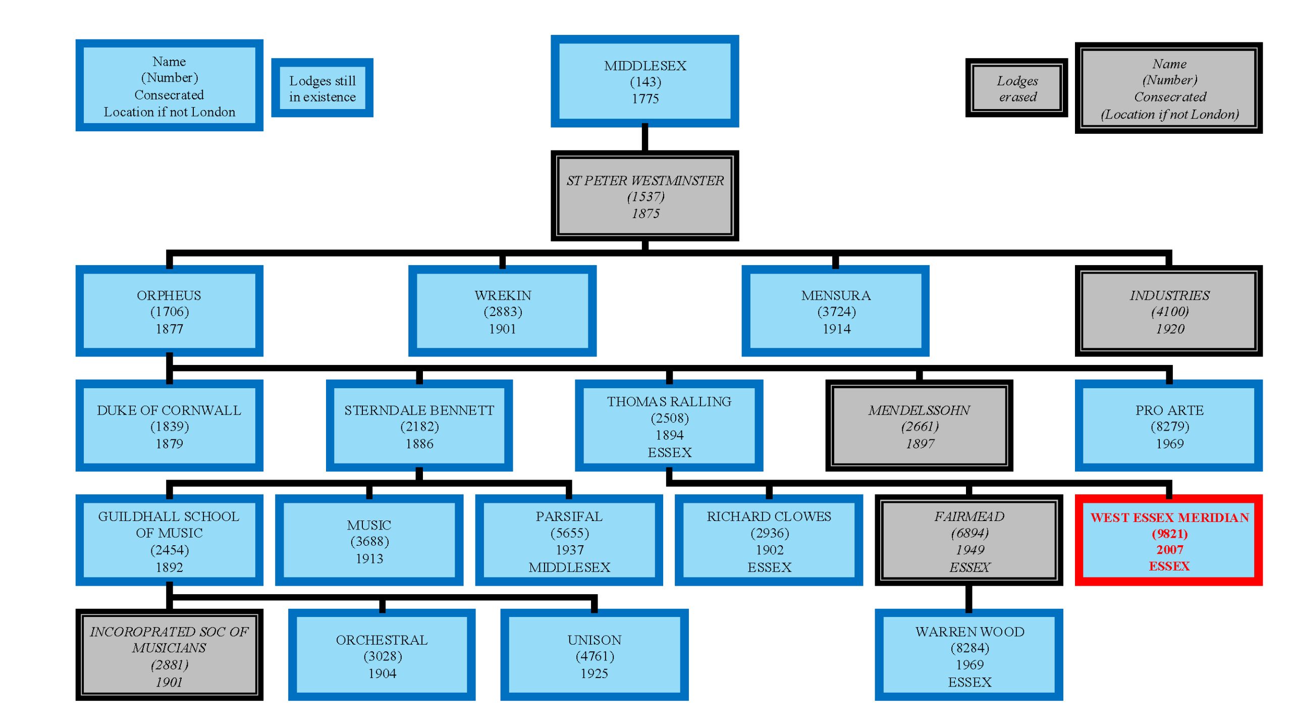 West Essex Meridian Lodge can trace its origins back to Middlesex Lodge 143, Met GL London. This Lodge was Consecrated in 1775 and currently meets at Innholders’ Hall in London.